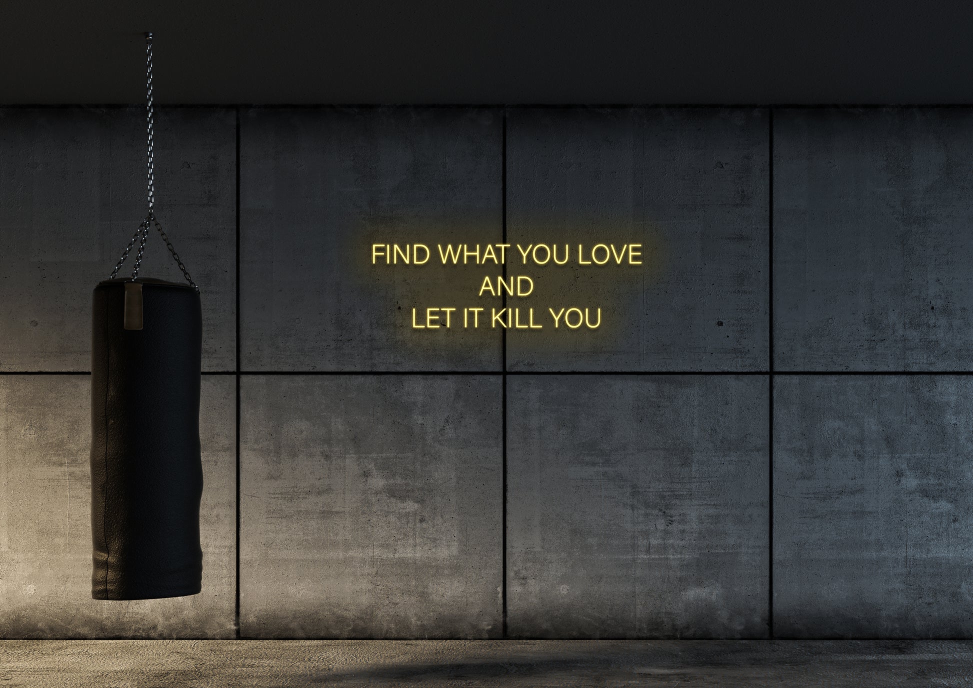 Illuminate inspiration with our "find what you love and let it kill you" neon sign. Let this bold statement illuminate your space and remind you to pursue your passions fearlessly. Made with high-quality neon tubing, this sign radiates a message with longevity.